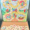 1988. Hard to find with great box graphics and even better board graphics. Shows all the characters including Gumby, Pokey, Prickle, Goo (and the Groobies) and the Blockheads. Missing 1 of 21 Groobie/Blockhead cards. Possibly one of the 4 cardboard pawn stands is replaced as it is Blue and others are White but works just fine. Contents are generally excellent- but all pawns are in two pieces (front/back). Both sides have images of characters and the two sit fine in the base, torn cleanly at top probably by original owner who didn’t read the instructions. Box bottom has 2 corner splits and top is still attached along one long side with original paper seal. Box is solid and overall good++++ for less then normal wear and tear.
