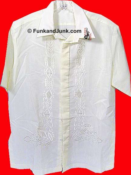 • Rosas hand stitched off white or light Yellow with stitching in shiny Gold Guayabera shirt